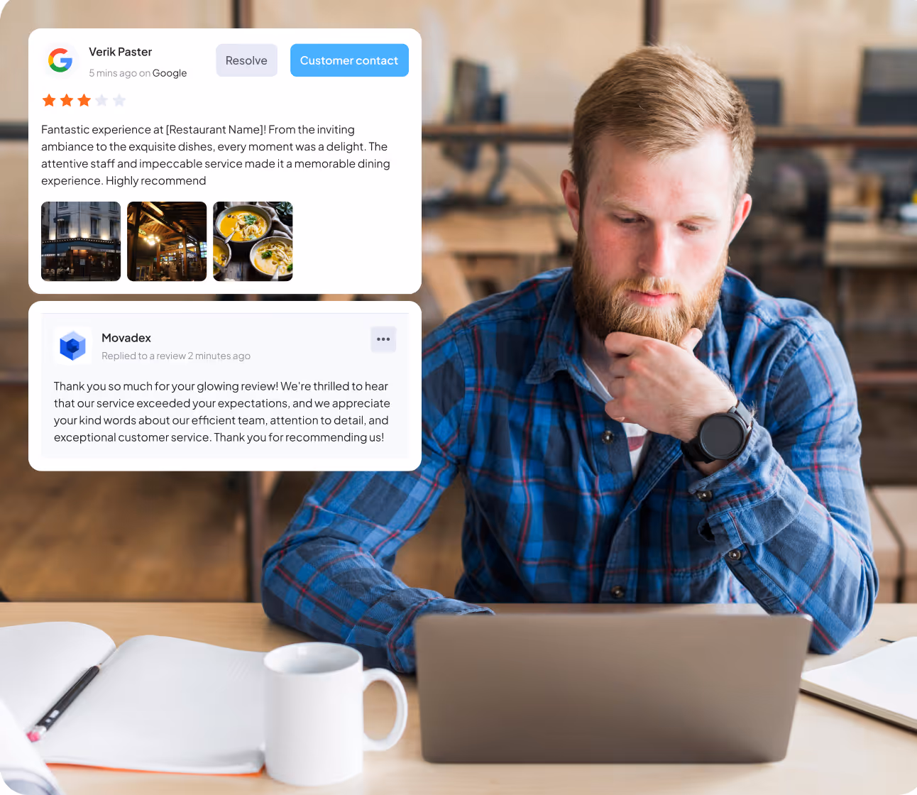 All your reviews from Google, Yelp, Facebook, and more in one clean, real-time interface. Manage multiple locations, assign roles, and keep brand consistency.